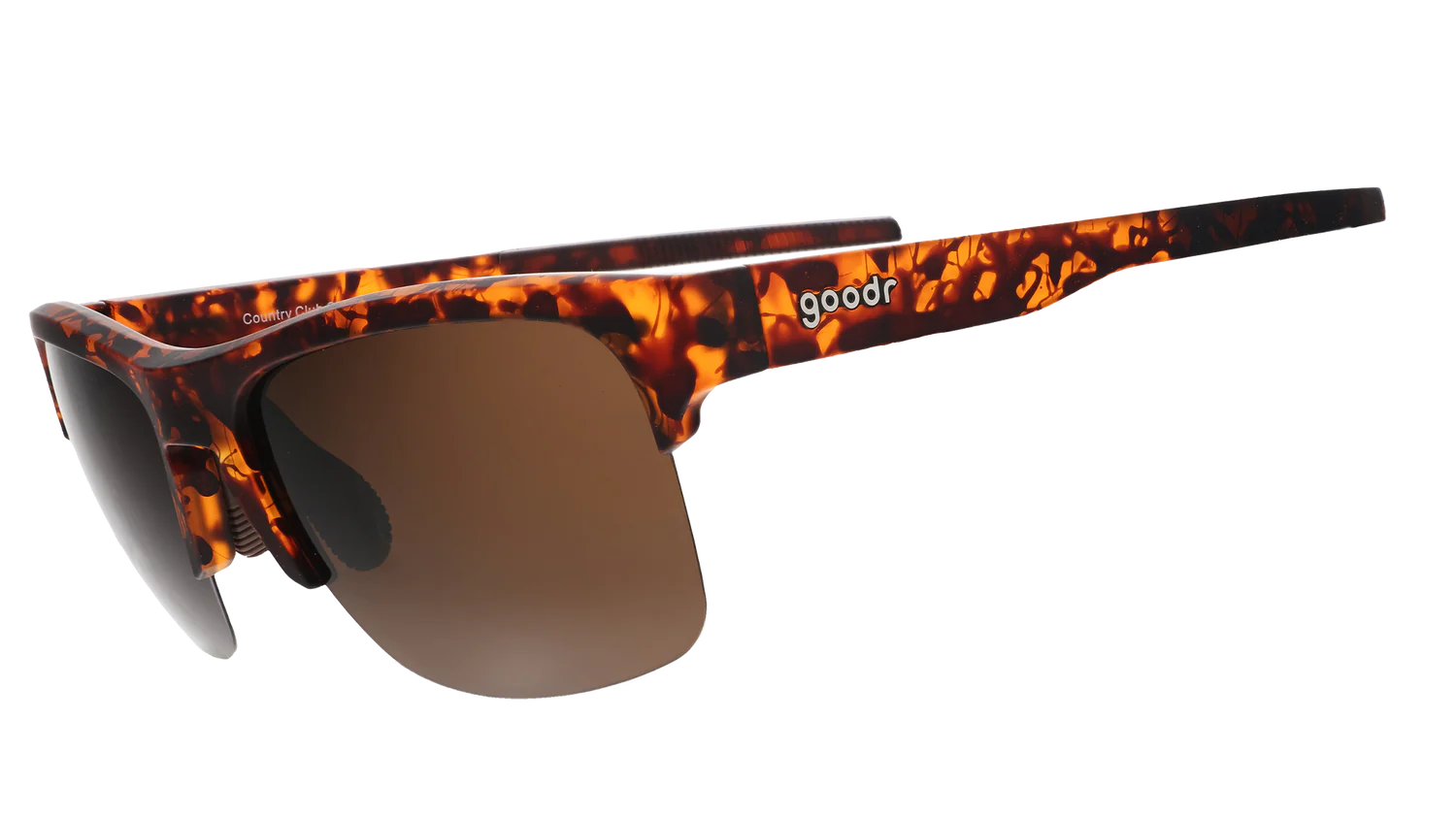 ¡Tu letrero de 'Solo Miembros' no nos detendrá! Ponte estos lentes de sol color carey y sorprende con estilo. Con un marco superior y un puente nasal completamente ajustable, te mantendrás seguro mientras se desata la persecución a toda velocidad en el carrito de golf.