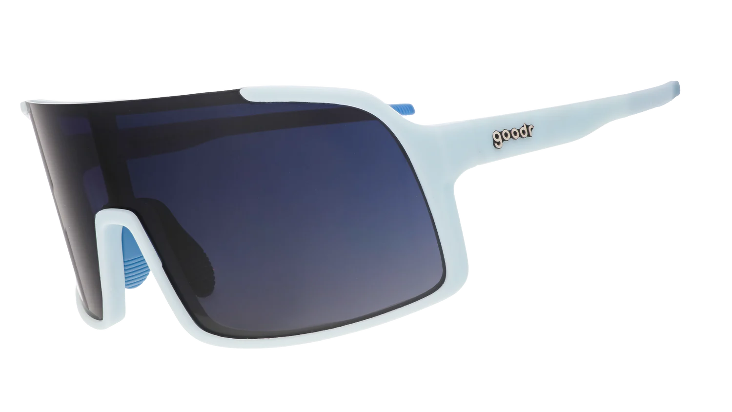 Monturas de escudo azul sin montura. Las lentes polarizadas degradadas reducen el resplandor del sol que brilla en el exoesqueleto metálico de tu secuestrador. No se resbalará ni rebotará mientras intentas desesperadamente escapar de tus captores cyborg. (P.D. La resistencia es inútil.)