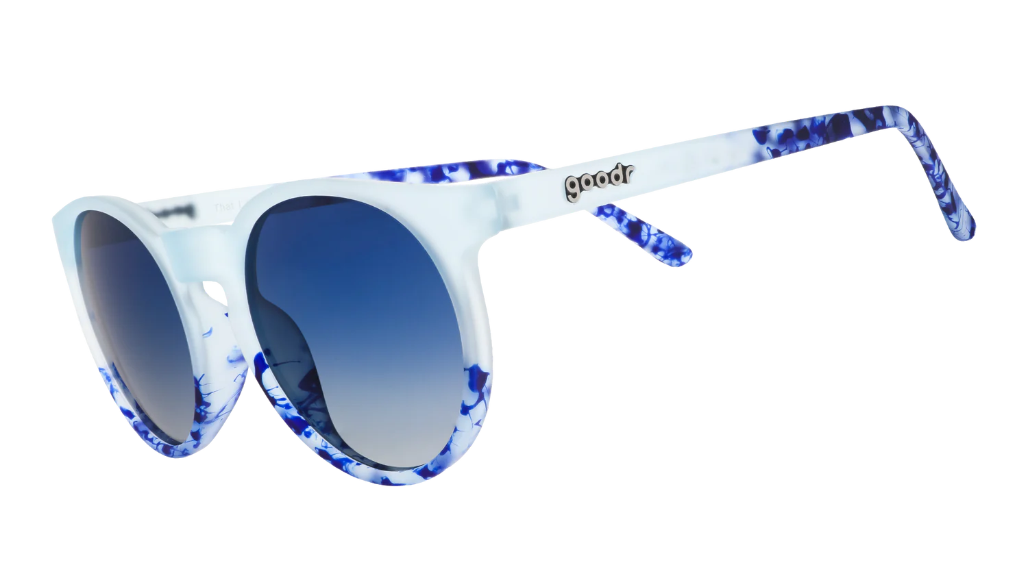 El elemento agua cobra forma en el primer lanzamiento de Elemental Essentials: That Literal Drip. Lentes de sol de edición limitada con montura azul claro translúcida, un diseño de remolino profundo y lentes polarizadas degradadas. ¡Causa sensación dondequiera que vayas!